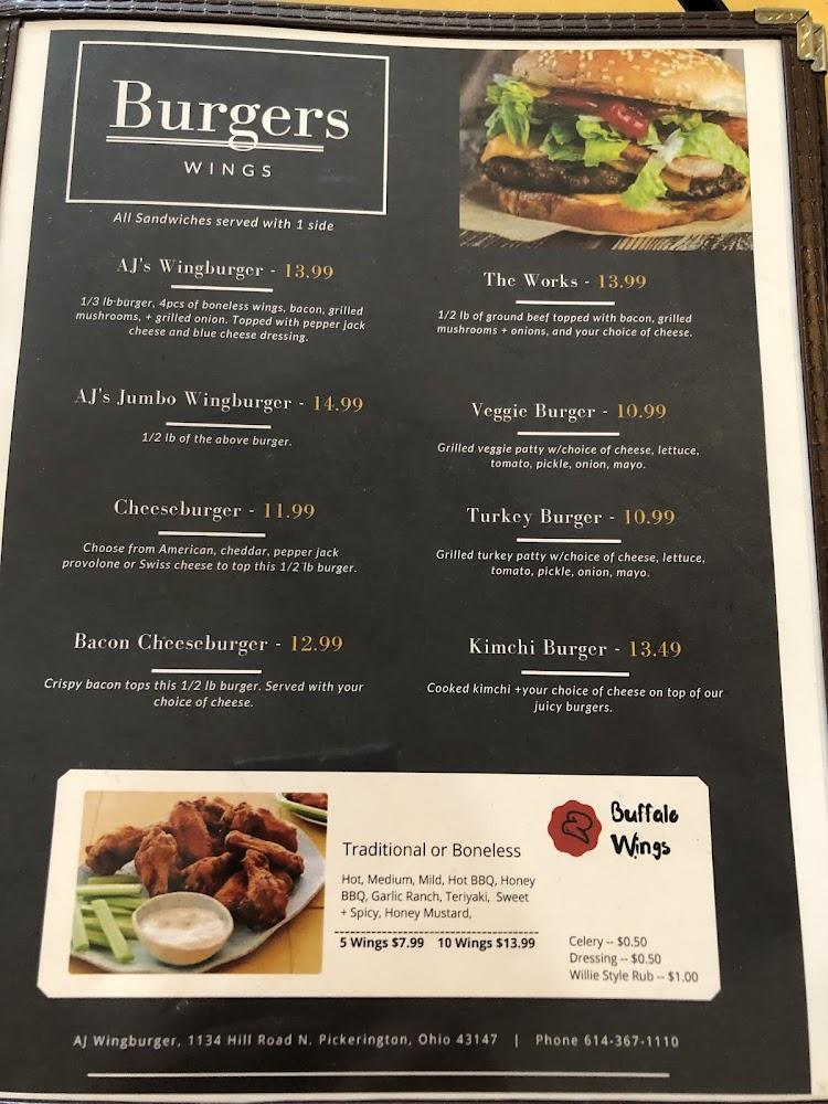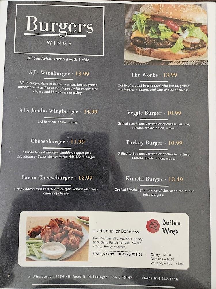 Welcome to A & J Wingburger, your go-to dining spot in Pickerington, OH! Located at 1134 Hill Rd N, we offer a delightful menu featuring local specialties perfect for breakfast, lunch, and dinner. Enjoy our inviting atmosphere with options for dine-in, takeout, or delivery. Whether you're savoring craft beers, hearty meals, or delicious vegetarian options, there's something for everyone. Our family-friendly environment includes accessible seating and facilities to cater to all guests. Join us for a quick bite, relax with cocktails, or bring the whole group for a satisfying meal. Reservations are welcome, making your experience even more enjoyable.